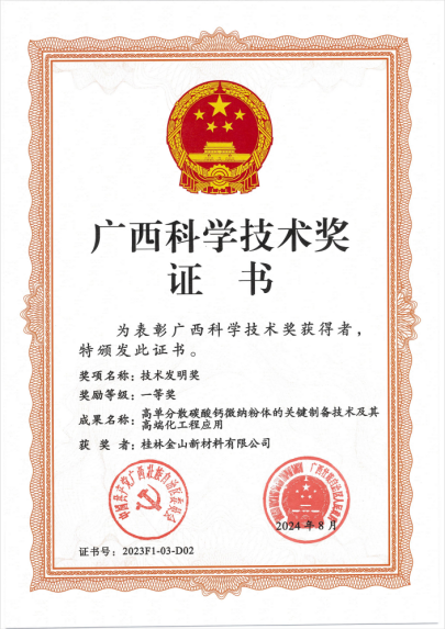 “中國碳酸鈣行業(yè)納米鈣第三強”